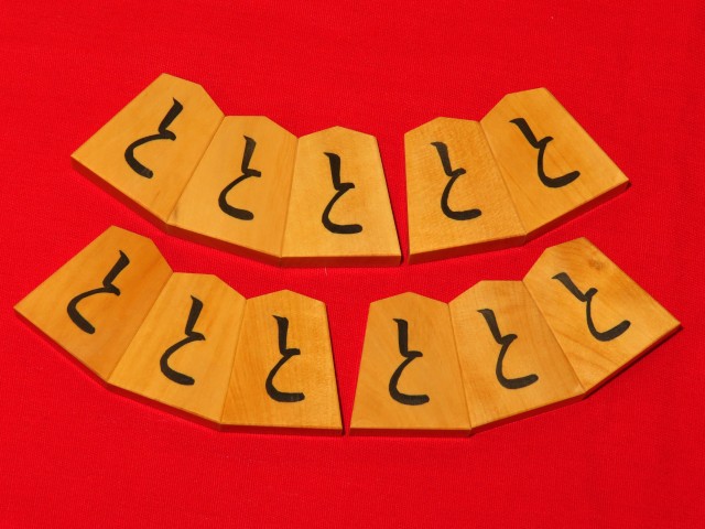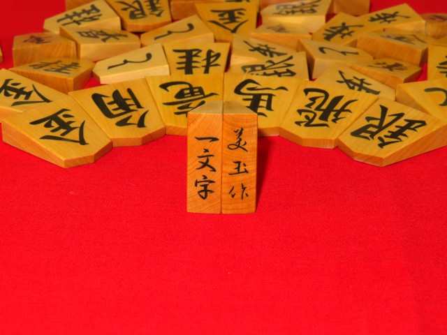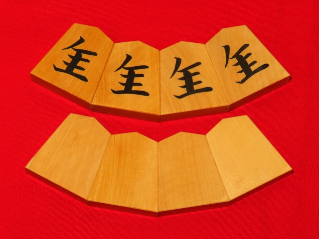 書体はNHKタイプ一文字。テレビのNHK杯戦でおなじみの書体です。金と成り銀の区別が見やすく一文字書体にあっては美しさ、使いやすさ共にバツグンです。