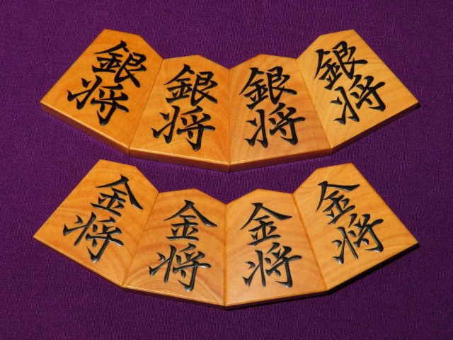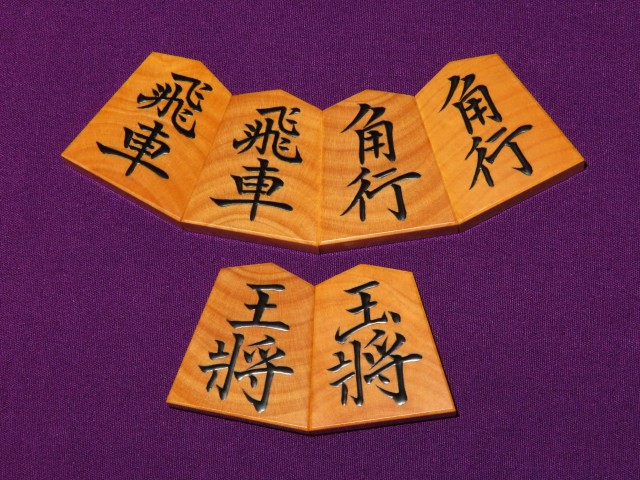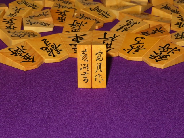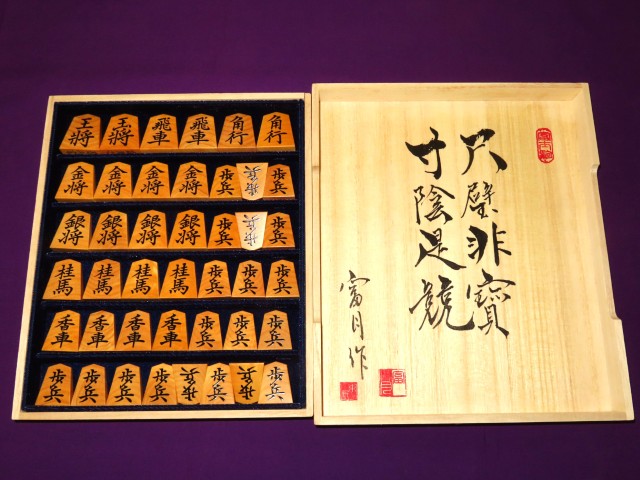富月作菱湖島黄楊木口杢盛上将棋駒 揮毫桐製平箱付 新品(KS1344)