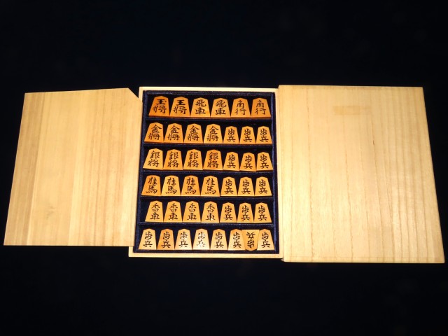 富月作水無瀬島黄楊赤柾盛上将棋駒 揮毫桐製平箱付 未使用品(KS1347)