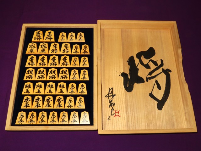 本作は芸術書道の荻野丹雪師と高級盛上駒の大澤富月師との二人の巨匠のコラボ作品。