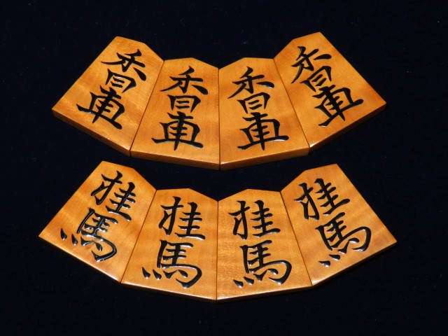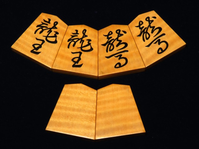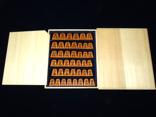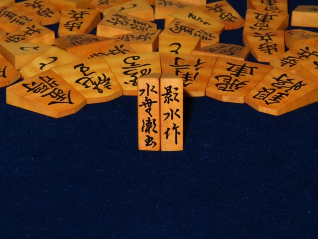 宮松影水作水無瀬御蔵島黄楊虎杢盛上将棋駒 桐平箱(K937)