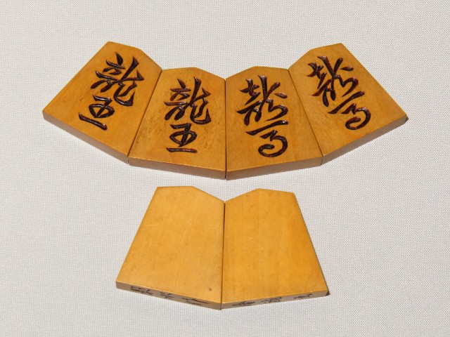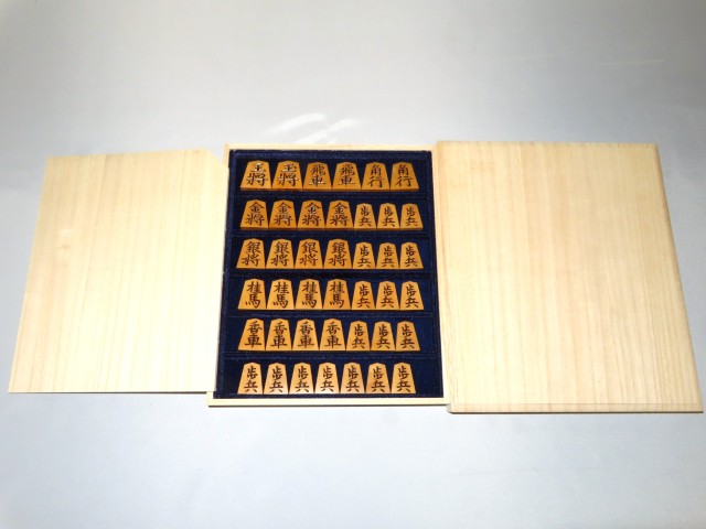 宮松影水作金龍島黄楊根杢彫将棋駒/桐平箱 使用品(K940)