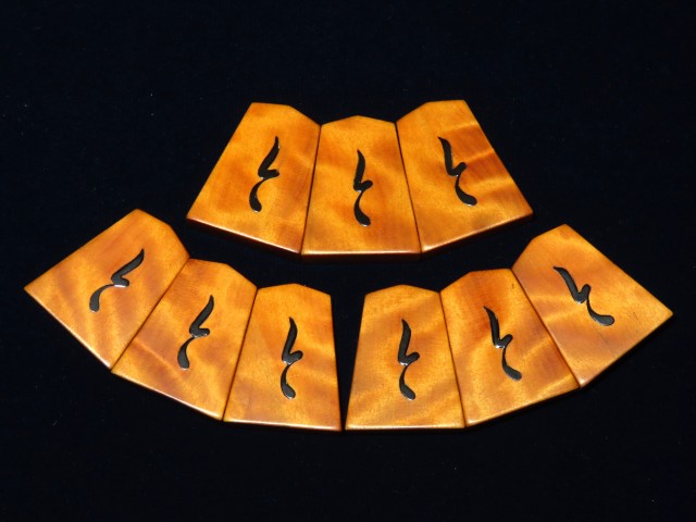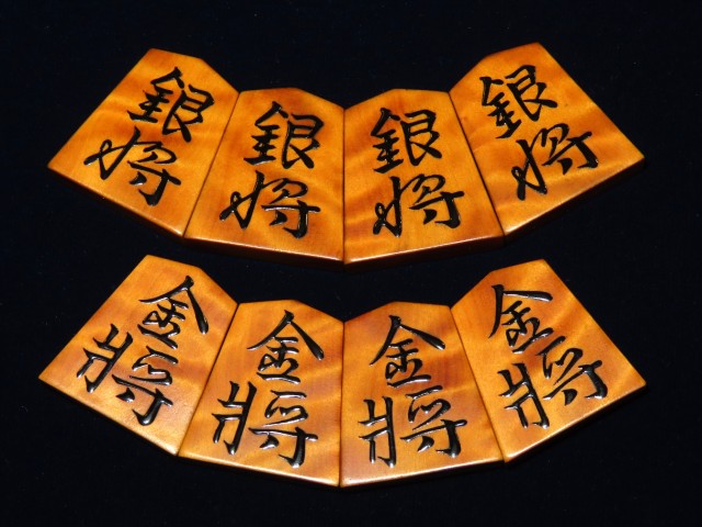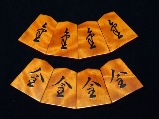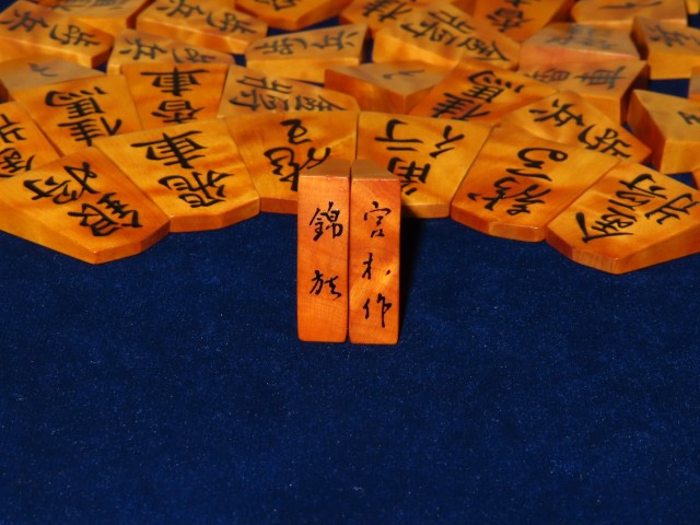 書体は「錦旗(きんき)」、後水尾天皇の銘と伝えられる伝統の書体。「(駒の道は)錦旗に始まり錦旗に終わる」といわれるオーソドックス、それでいて奥の深い書体です。