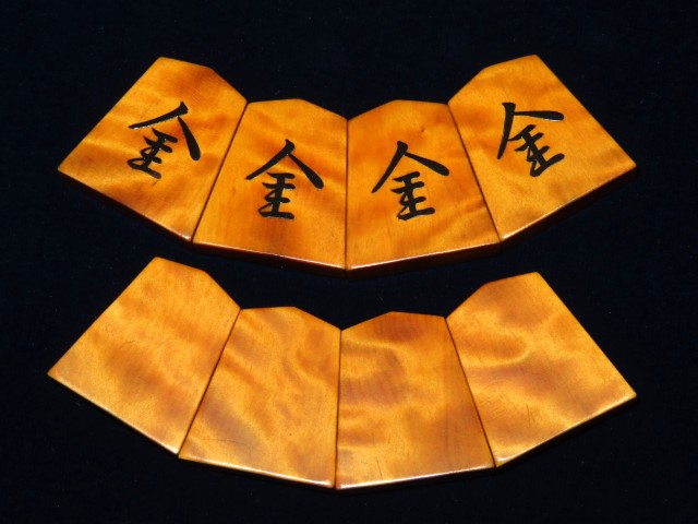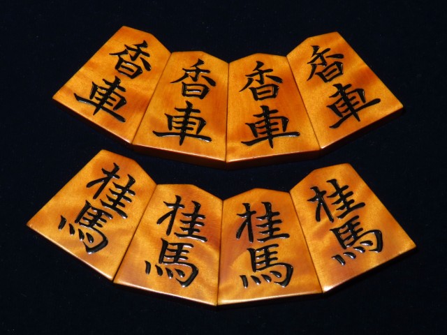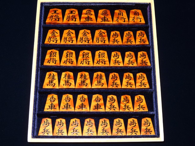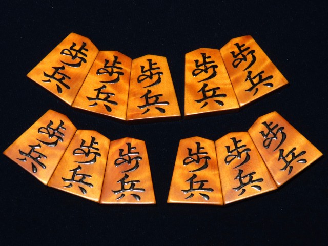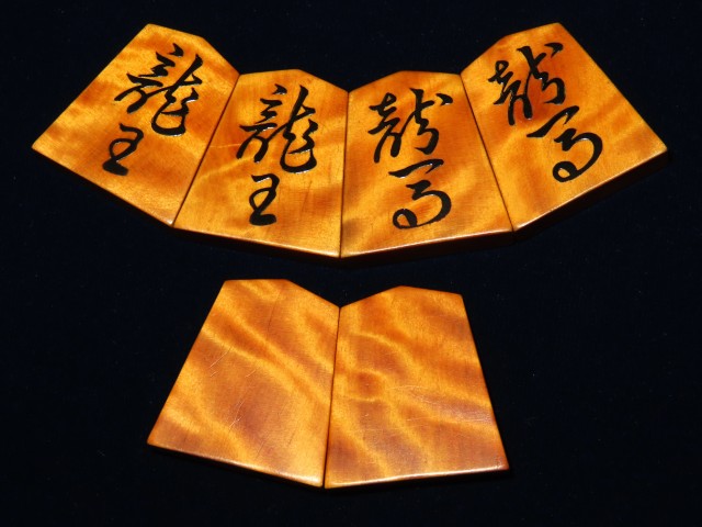 スレ・漆のヘリ等の使用感がある程度、作者銘に漆の一部トビがございました。駒字にはトビはありません。