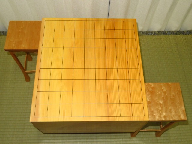 駒台は高橋徹男作楓(かえで)鳥眼杢(バーズアイ)矢倉(四本脚)。御覧の通り非常に良い品です。こちらももちろん新品です。