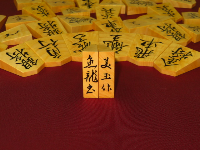 美玉作魚龍薩摩黄楊稲妻杢盛上将棋駒 新品/桐平箱付(KS1025)