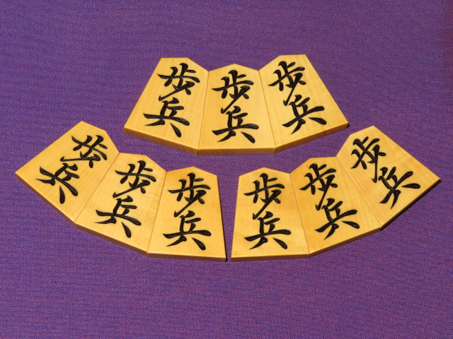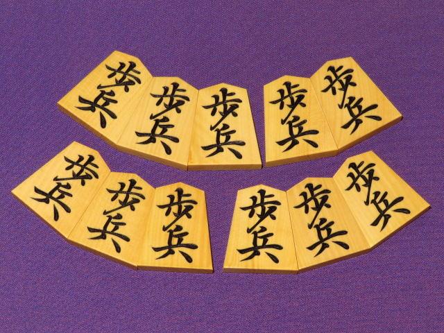 制作意図は「名匠の盛上駒の色気・艶を安価に彫駒で再現」です。制作にあたっては私が監修いたしました。味の良い作品になっていると思います。