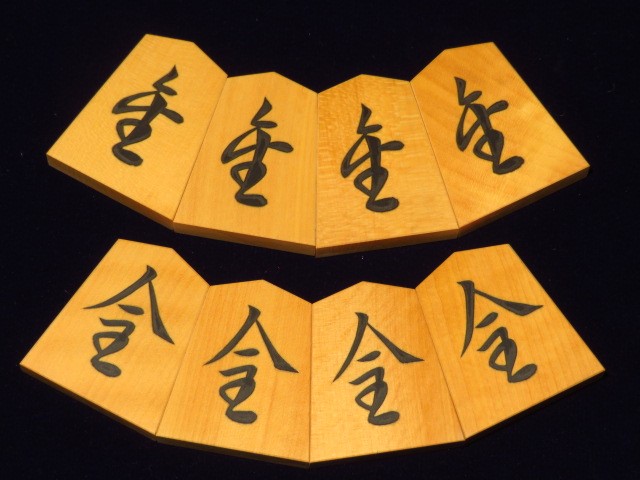 書体はNHKタイプ一文字。テレビのNHK杯戦でおなじみの書体です。金と成り銀の区別が見やすく一文字書体にあっては美しさ、使いやすさ共にバツグンです。
