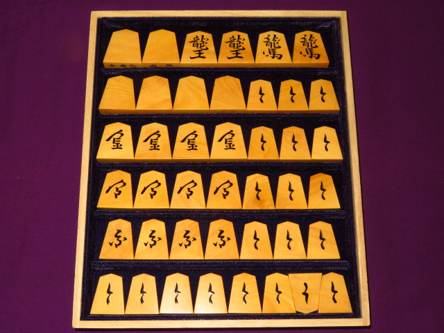 千舟作長禄本黄楊赤杢盛上将棋駒 新品/桐製平箱付(KS1144)