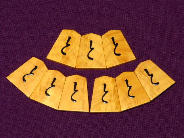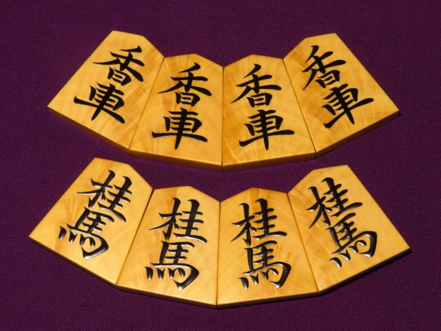千舟作菱湖薩摩黄楊孔雀杢盛上将棋駒 新品/桐製平箱付(KS1183)