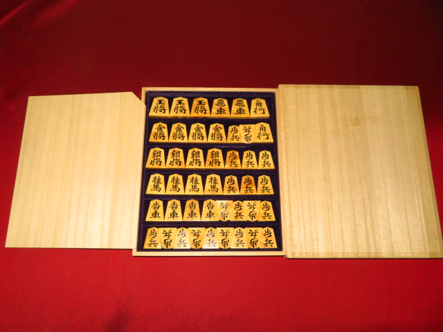 蛍雪作三玉錦旗御蔵島黄楊銀目盛上将棋駒 新品/桐製平箱付(KS1226)