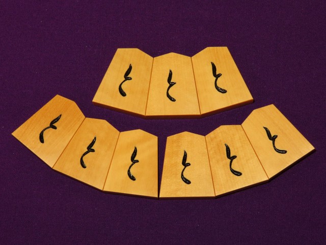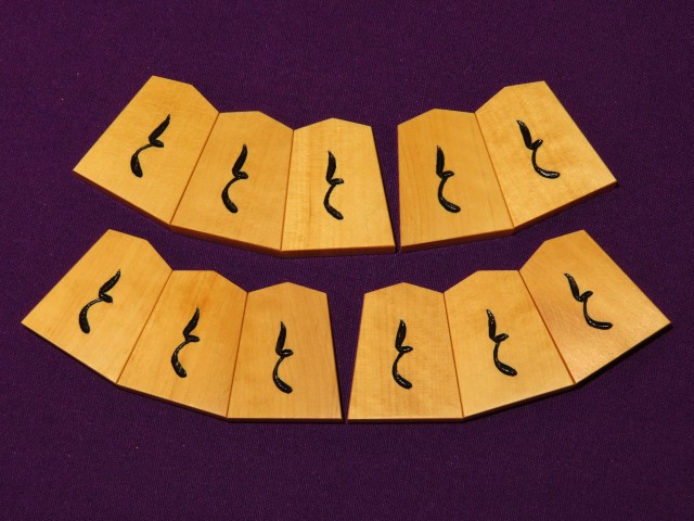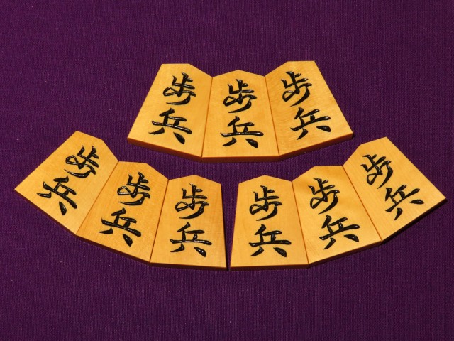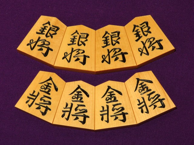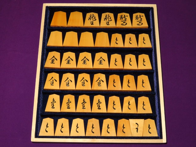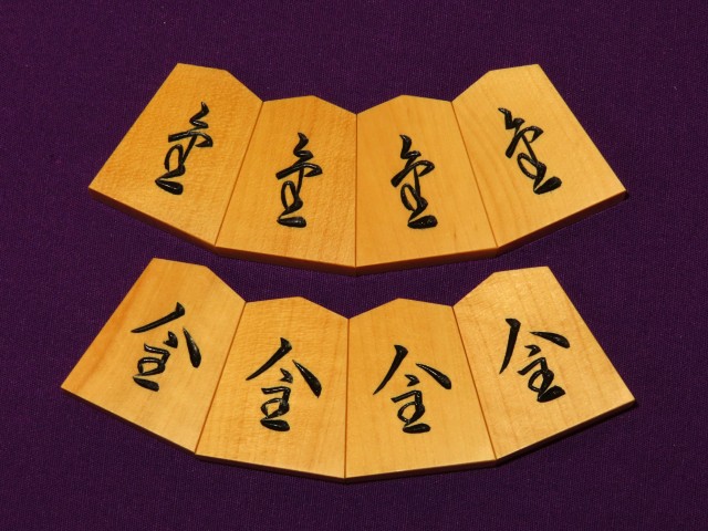 書体は「錦旗(きんき)」、後水尾天皇の銘と伝えられる伝統の書体。「(駒の道は)錦旗に始まり錦旗に終わる」といわれるオーソドックス、それでいて奥の深い書体です。