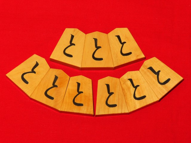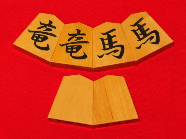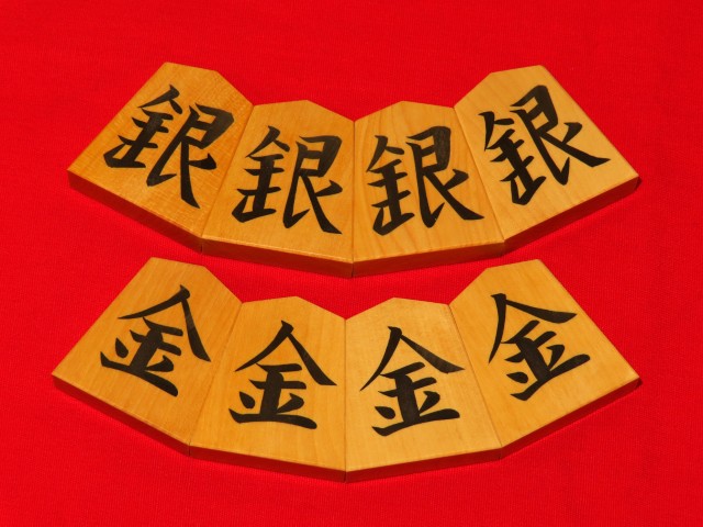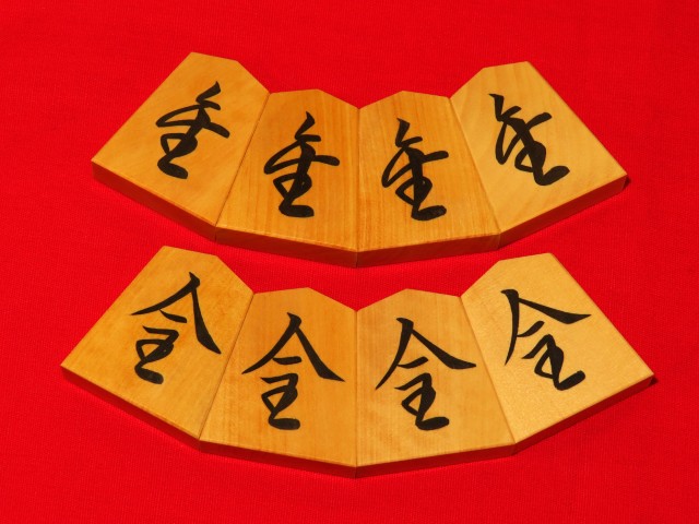 書体はNHKタイプ一文字。テレビのNHK杯戦でおなじみの書体です。金と成り銀の区別が見やすく一文字書体にあっては美しさ、使いやすさ共にバツグンです。