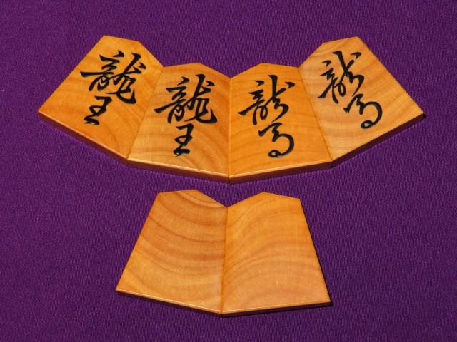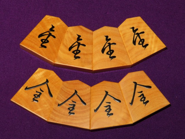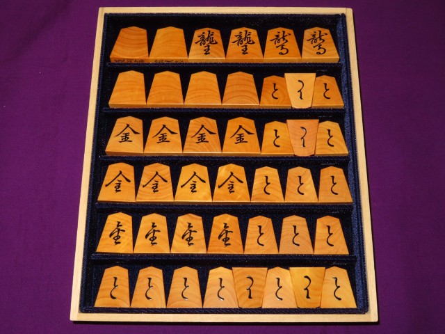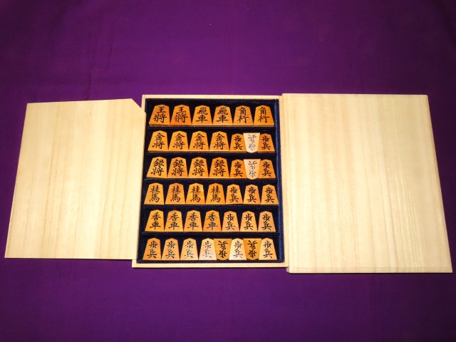 富月作菱湖島黄楊木口杢盛上将棋駒 揮毫桐製平箱付 新品(KS1344)