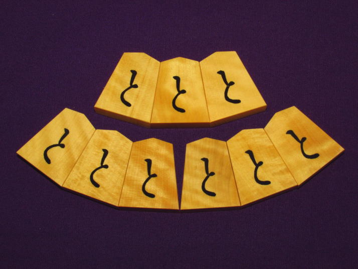 大竹竹風作菱湖島黄楊虎斑彫埋将棋駒 新品/桐製平箱付(KS264)