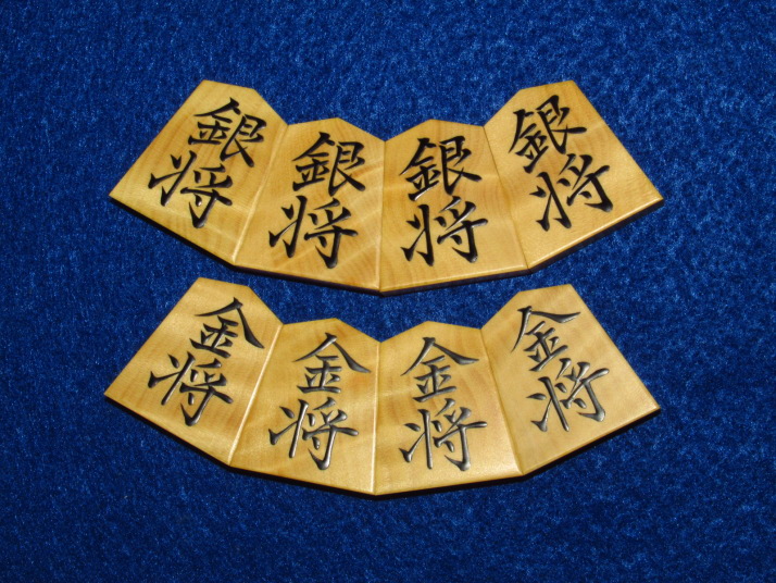 木地は御蔵島黄楊銀目、ご覧のとおり味のよい木地です。余り歩は2枚です。