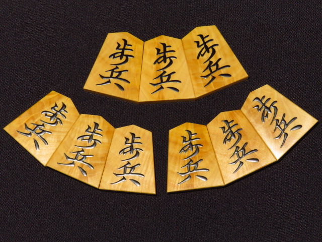 美玉作源兵衛清安薩摩黄楊稲妻杢盛上将棋駒 新品/桐平箱付(KS479)