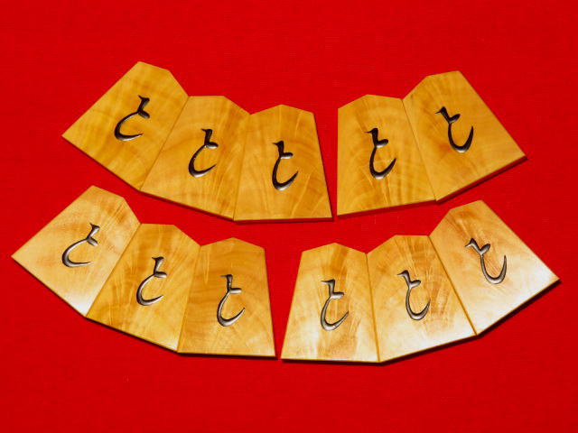 美玉作水無瀬薩摩黄楊孔雀杢盛上将棋駒 新品/桐平箱付(KS526)