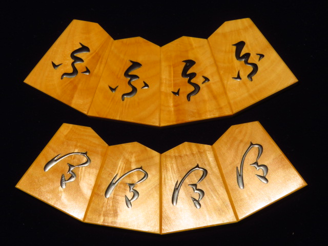 美玉作長禄薩摩黄楊稲妻杢盛上将棋駒 新品/桐平箱付(KS534)