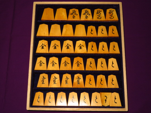 正虎作宗歩好島黄楊杢混盛上将棋駒/新品桐製平箱付(KS546)