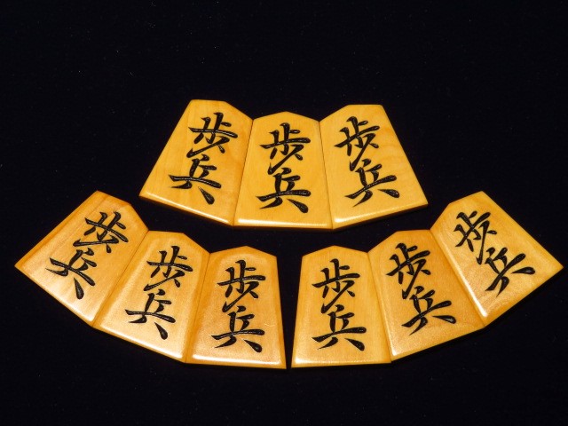 影水駒木地使用/清夏作影水写巻菱湖島黄楊彫将棋駒/新品 桐平箱付(KS719)