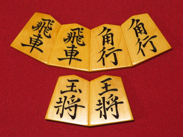 影水駒木地使用/清夏作影水写巻菱湖御蔵島黄楊彫将棋駒/新品 桐平箱付(KS926)