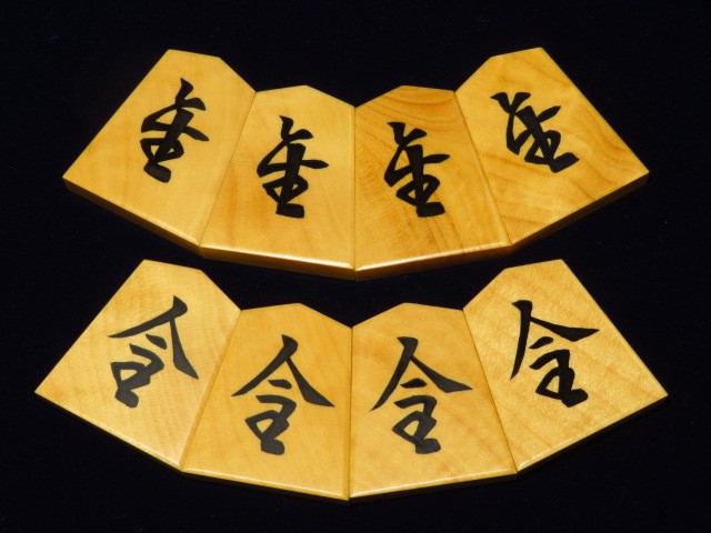 書体はNHKタイプ一文字。テレビのNHK杯戦でおなじみの書体です。金と成り銀の区別が見やすく一文字書体にあっては美しさ、使いやすさ共にバツグンです。