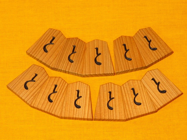 木地は富士宮の名木富士檜。「富士駒の会」の監修を得て、駒木地用に圧縮して、硬度と比重を高めた品です。指し味・指し音は黄楊との違いは感じませんでした。