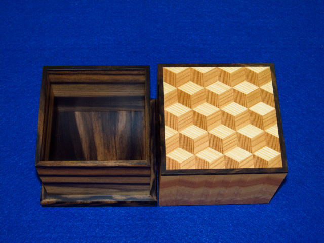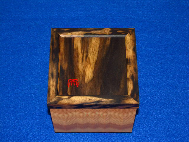 大橋利一作秋田杉木画印籠形将棋駒箱 桐共箱付(KH136)