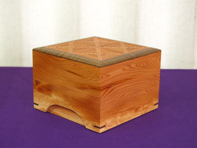 超高級美術組子の第一人者、二代目大橋利一(りいち/1953〜)師の作品、銘入秋田杉組子駒箱です。新品です。