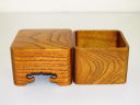 江戸の情緒を今に残す東京深川で美術駒箱・駒台一筋、奥山正直師の作品、島桑隅丸駒箱です。新品です。