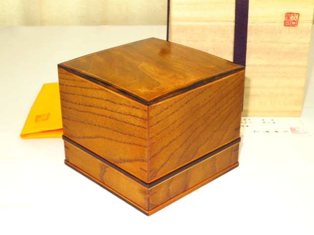 富士駒の会、ただ一人の駒箱作家、松浦清治師の作品、島桑印籠形。師の作品の中にあって最高の品です。新品です。