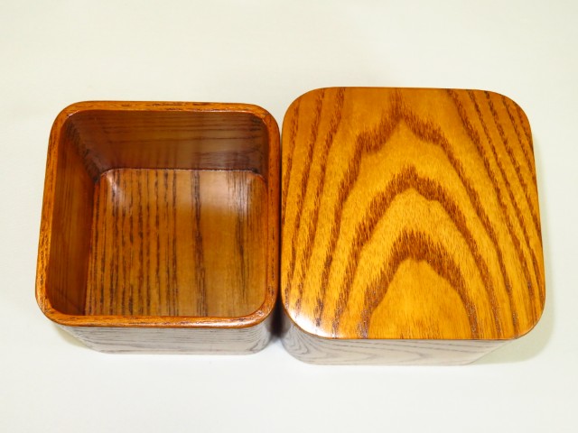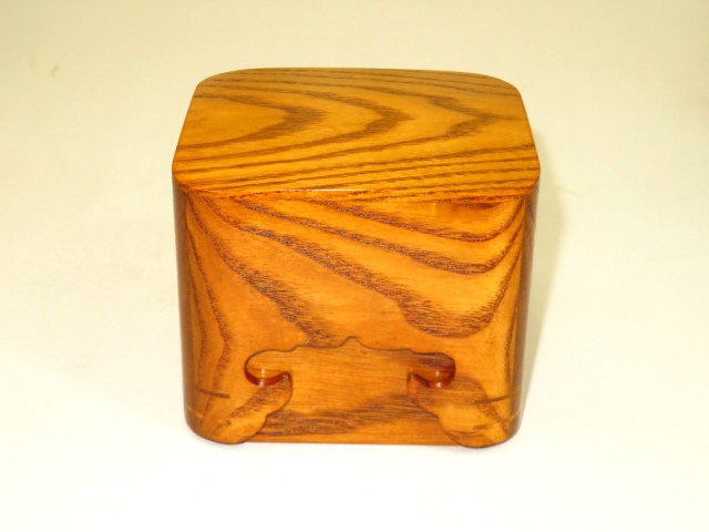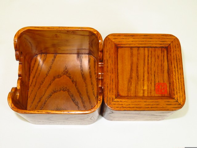 松浦清治作タモ拭漆仕上隅丸(すみまる)将棋駒箱 オリジナル化粧箱付/新品(KH344)
