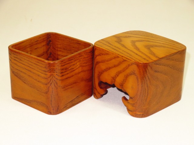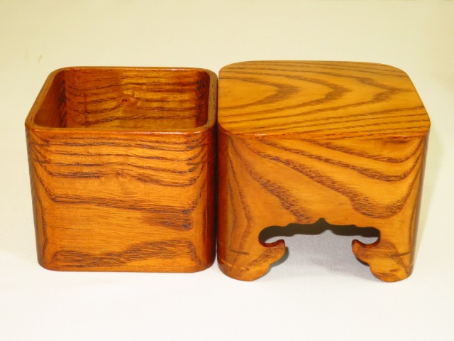 今回の作品は隅丸、隅丸は非常に高度な技法だそうで材料も手間も通常の駒箱の倍ほどかかるといわれています。