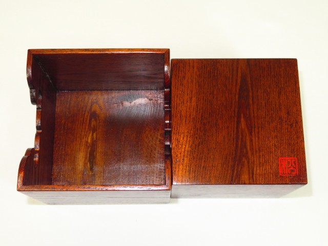 東海の名工松浦清治師の粋な拭漆仕上駒箱です。新品です。