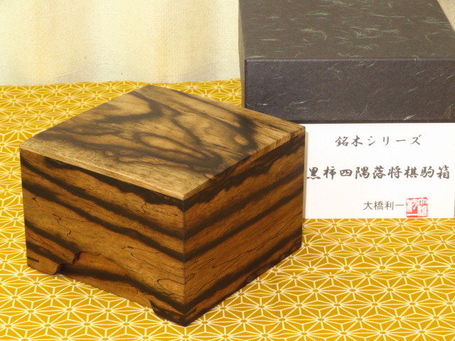 大橋利一作黒柿四隅落将棋駒箱 紙箱付新品(KH350)