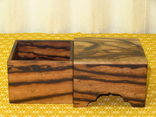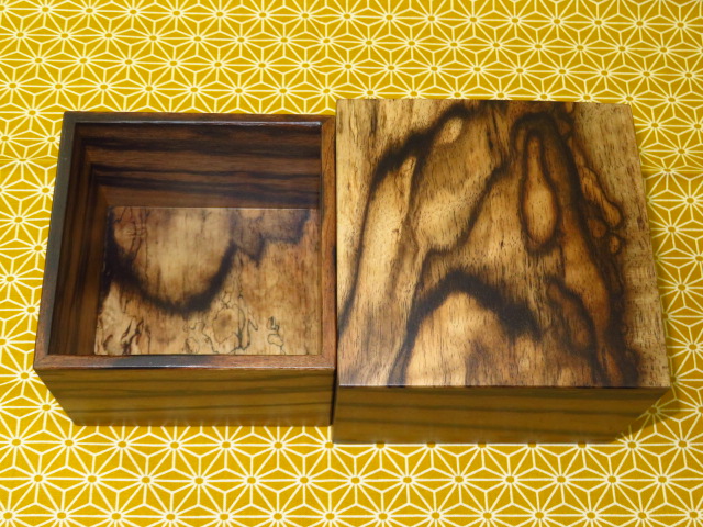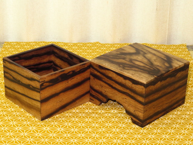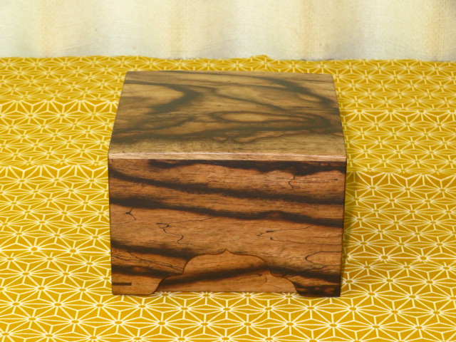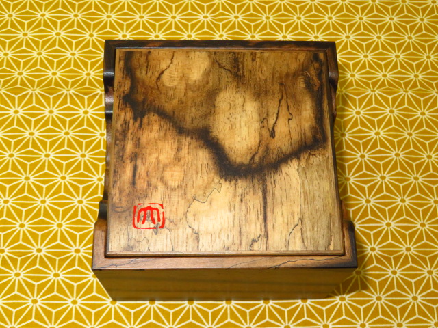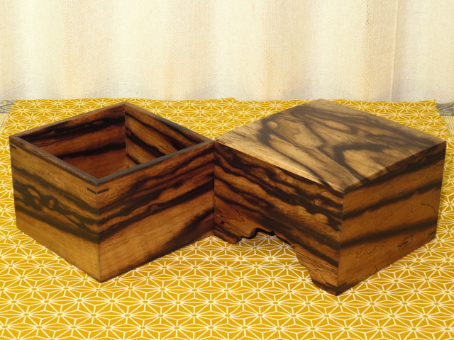 木地は駒箱材の最高峰黒柿。侘びた趣の味の良い作品です。
