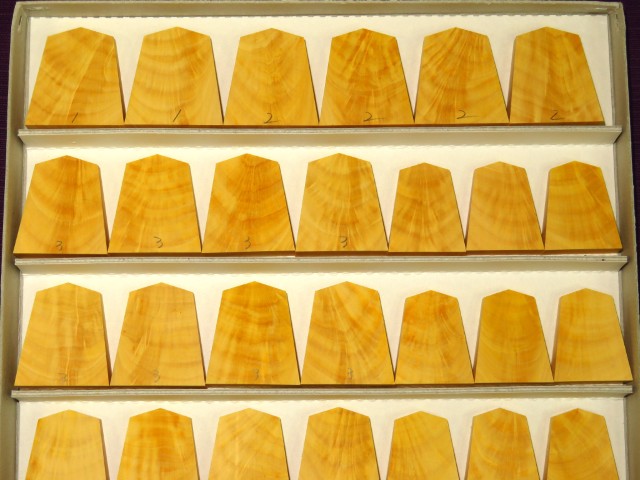 薩摩黄楊、稲妻杢の木地です。成形精度は高いと思います。仕上もよく400〜600番程度を軽く当てれば、字母紙が貼れると思います。