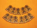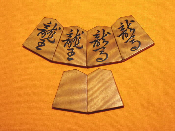 銀将の1枚に極僅かな漆のトビがございます。その他経年使用による若干の漆のヘリ・スレ等の使用感がございます。