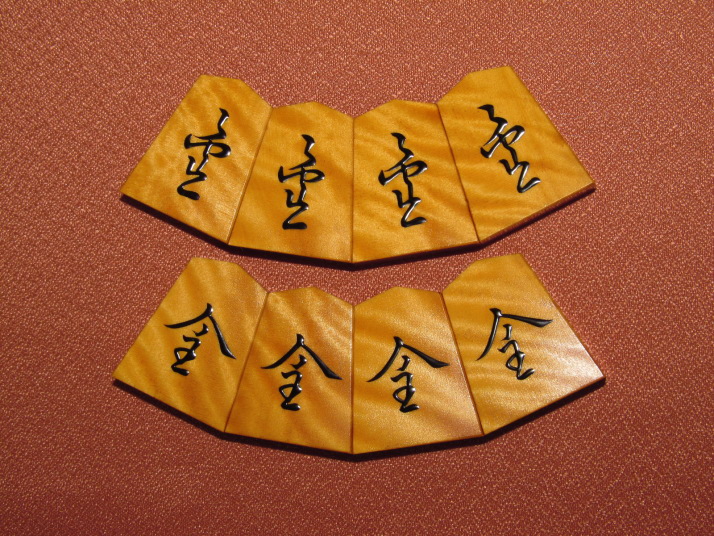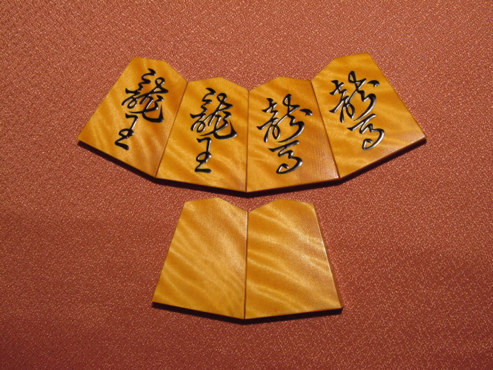 書体は「淇洲(きしゅう)」、明治・大正期に活躍した酒田の竹内淇洲の銘です。「関根(十三世名人)の出世駒(通称関根錦旗)」として有名な書体です。