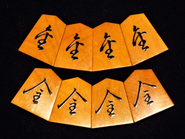 静山作菱湖島黄楊根杢盛上将棋駒/展示用平箱 使用品(K673)