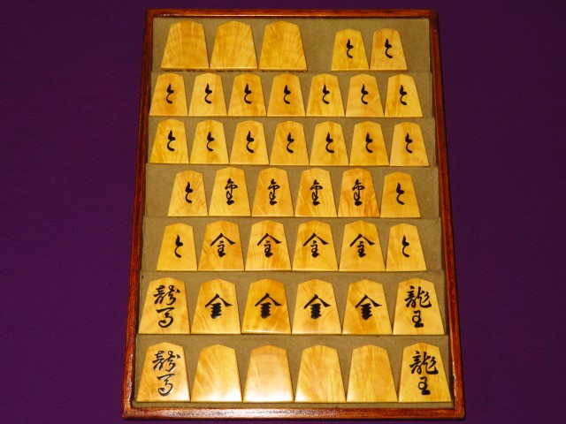 熊澤良尊作三玉古水無瀬薩摩黄楊孔雀杢盛上将棋駒/新品 良尊直筆揮毫桐平箱(K787)