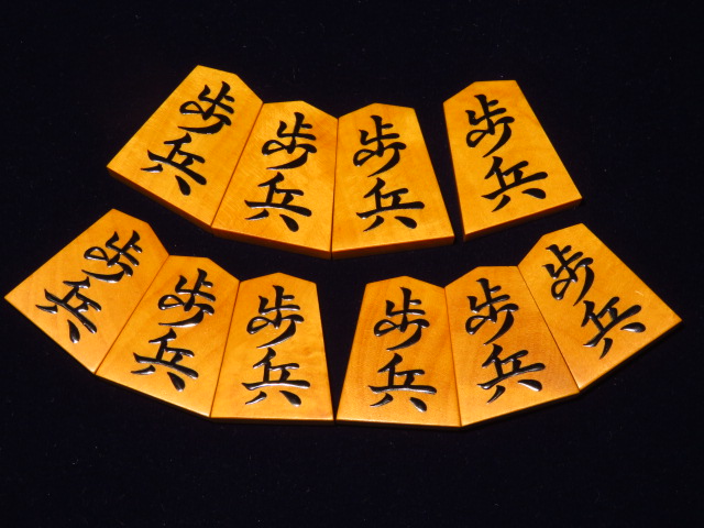 書体は「錦旗(きんき)」、後水尾天皇の銘と伝えられる伝統の書体。「(駒の道は)錦旗に始まり錦旗に終わる」といわれるオーソドックス、それでいて奥の深い書体です。