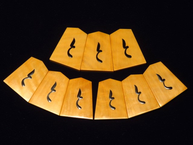 静山作錦旗御蔵島黄楊虎斑盛上将棋駒/未使用品(K866)