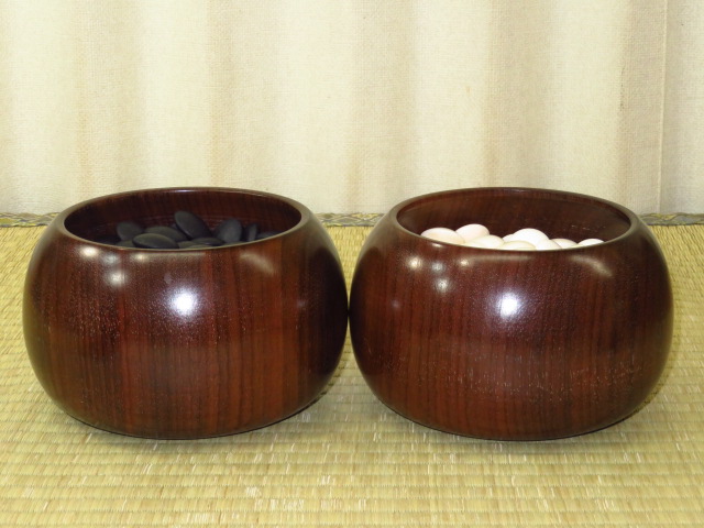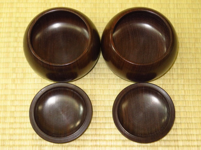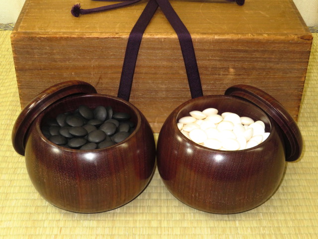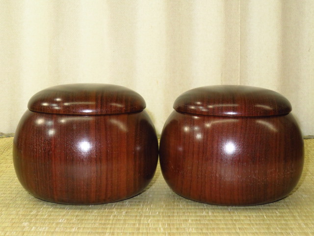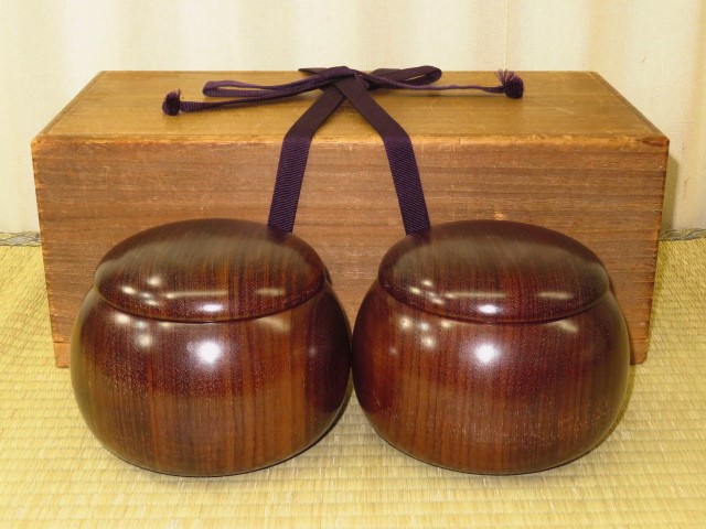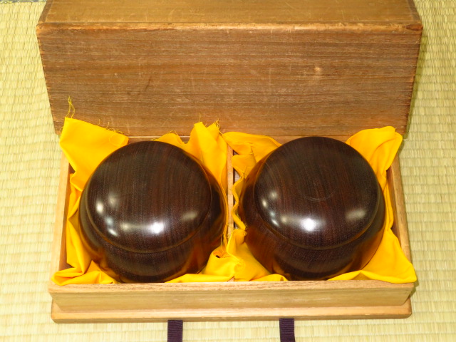 碁笥は黒檀柾目安井型特大。スレ等の使用感はございますが状態は良好です。
