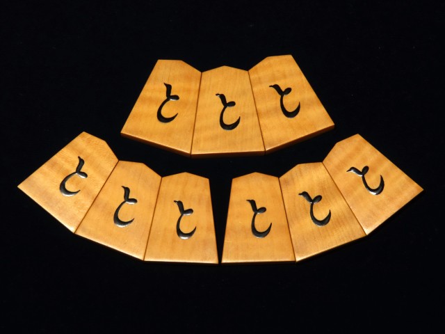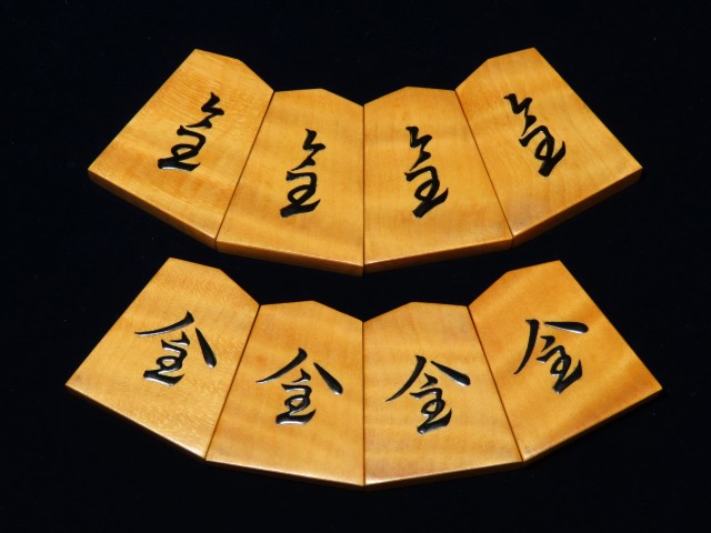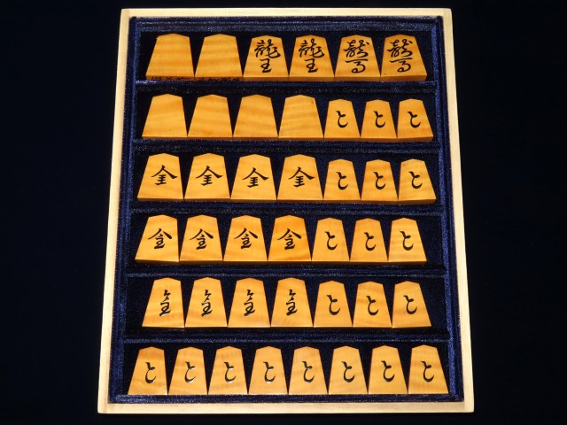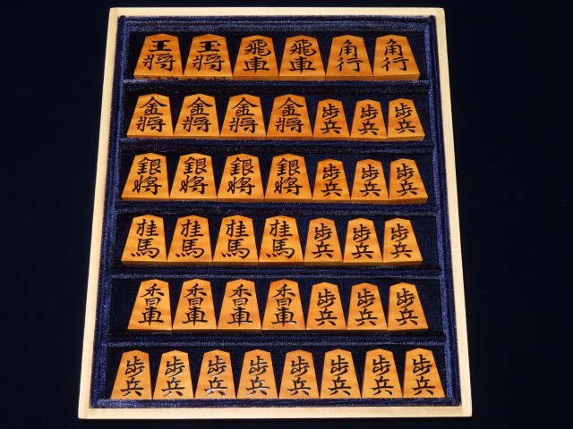宮松影水作水無瀬御蔵島黄楊虎杢盛上将棋駒 桐平箱(K937)