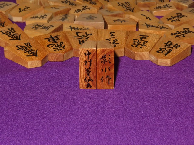 宮松影水作中村董仙白檀盛上将棋駒/未使用品桐平箱付(K942)