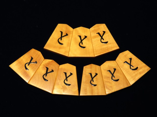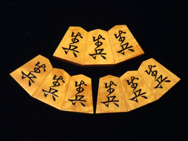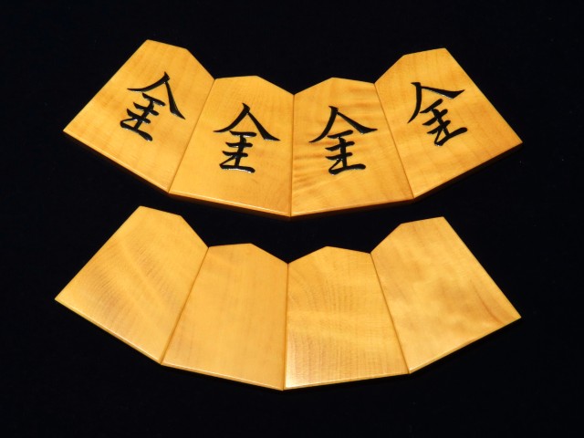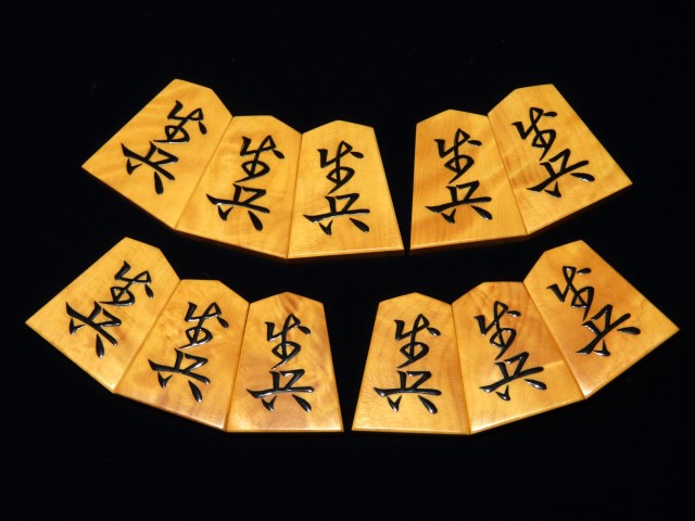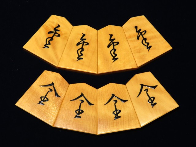 増山酔棋作峰(みね/作品番号312作)・・・。師の作品には華があります、雅で美しく不思議な艶があります。師の作品には特殊な方法による「漆書駒」もございますが本作は(彫・埋め・盛上工程を経た)盛上駒です。