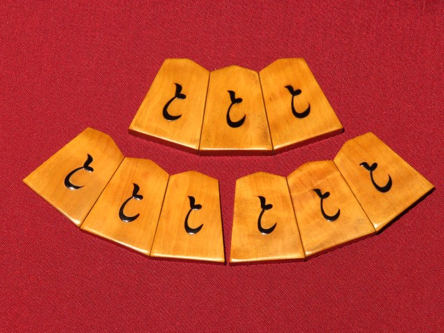宮松影水作水無瀬御蔵島黄楊杢盛上将棋駒/使用品桐平箱(K947)