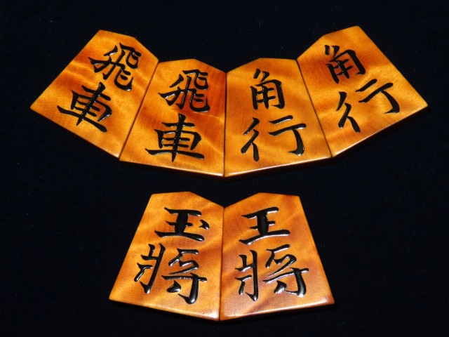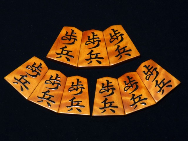 スレ・漆のヘリ等の使用感がある程度、作者銘に漆の一部トビがございました。駒字にはトビはありません。